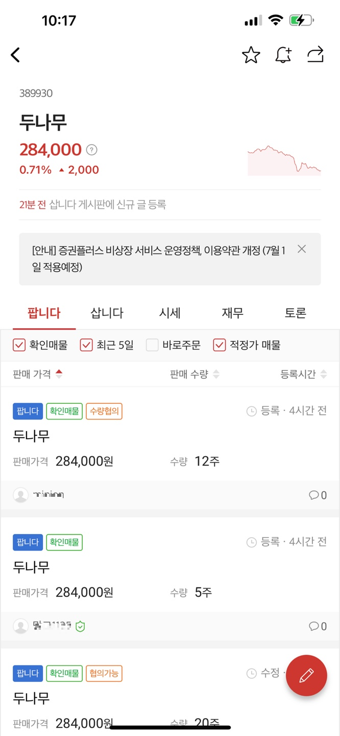 거래를 원하는 글이 올라와있습니다.