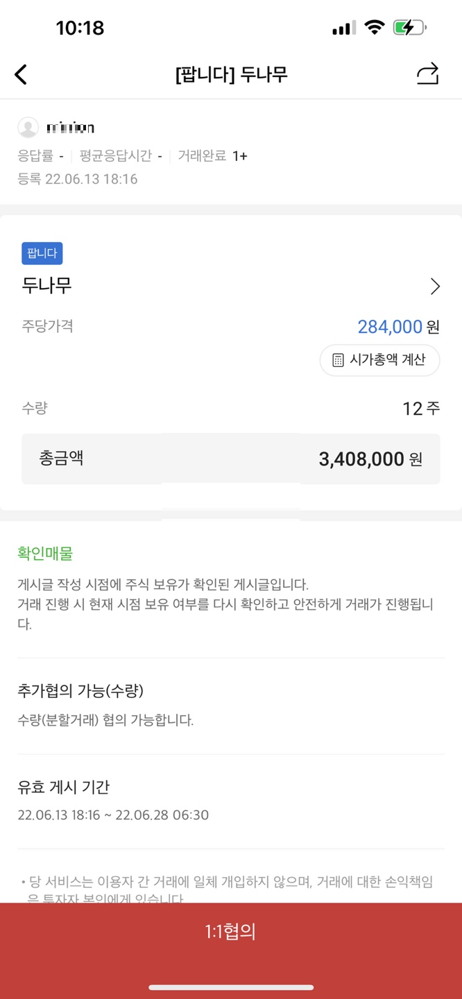 원하시는 글 클릭후에 1:1 협의를 누르시고