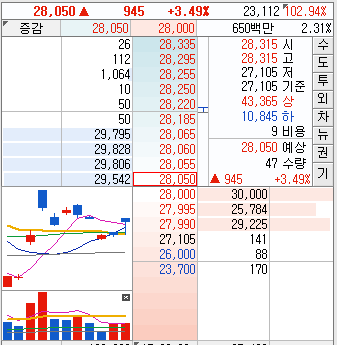 호가창을 보시면 매도와 매수에 약 3만주씩 균등하게