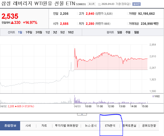 그러면 차트 밑에 ETN 분석이라는 탭이 있는데 그곳을 클릭하면