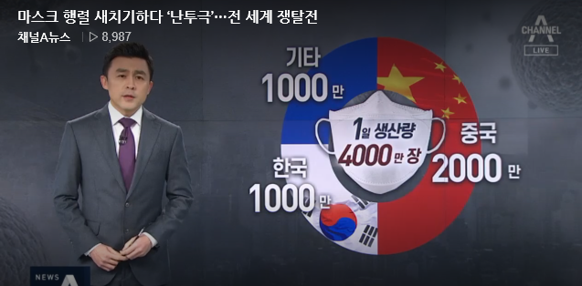 나머지 국가가 1000만장을 생산하다보니 코로나 같은 전염병이 생기자 마스크를 아에 구할수가 없게 된것 입니다.