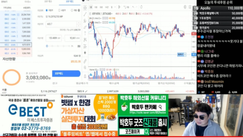주로 해외선물을 방송하는 BJ였지만 현재는 비트코인을 방송하는 경우가 더 많습니다.