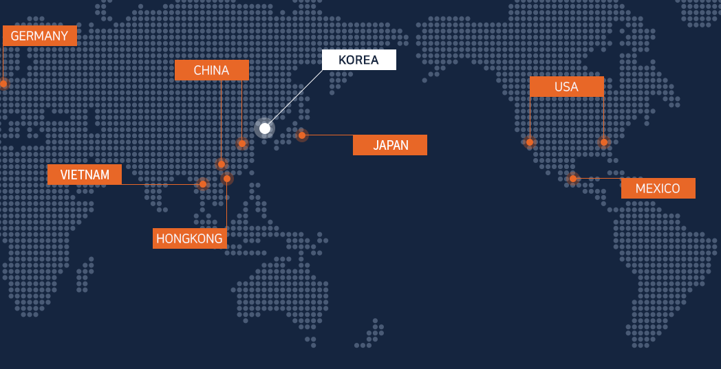 일본, 미국, 멕시코, 중국, 홍콩, 베트남 ,독일에