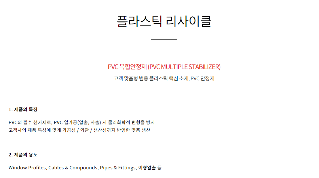 주요제품으로는 바이오에너지/플라스틱리사이클/배터리리사이클이며