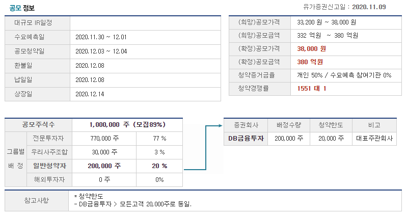 공모금액은 380억입니다.