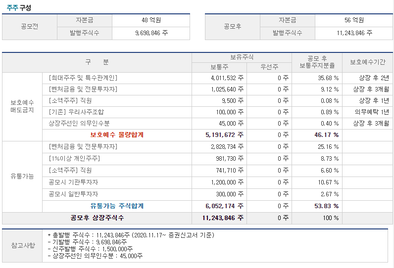 총주식수는 1100만주이며 유통가능한 주식은 600만주입니다.