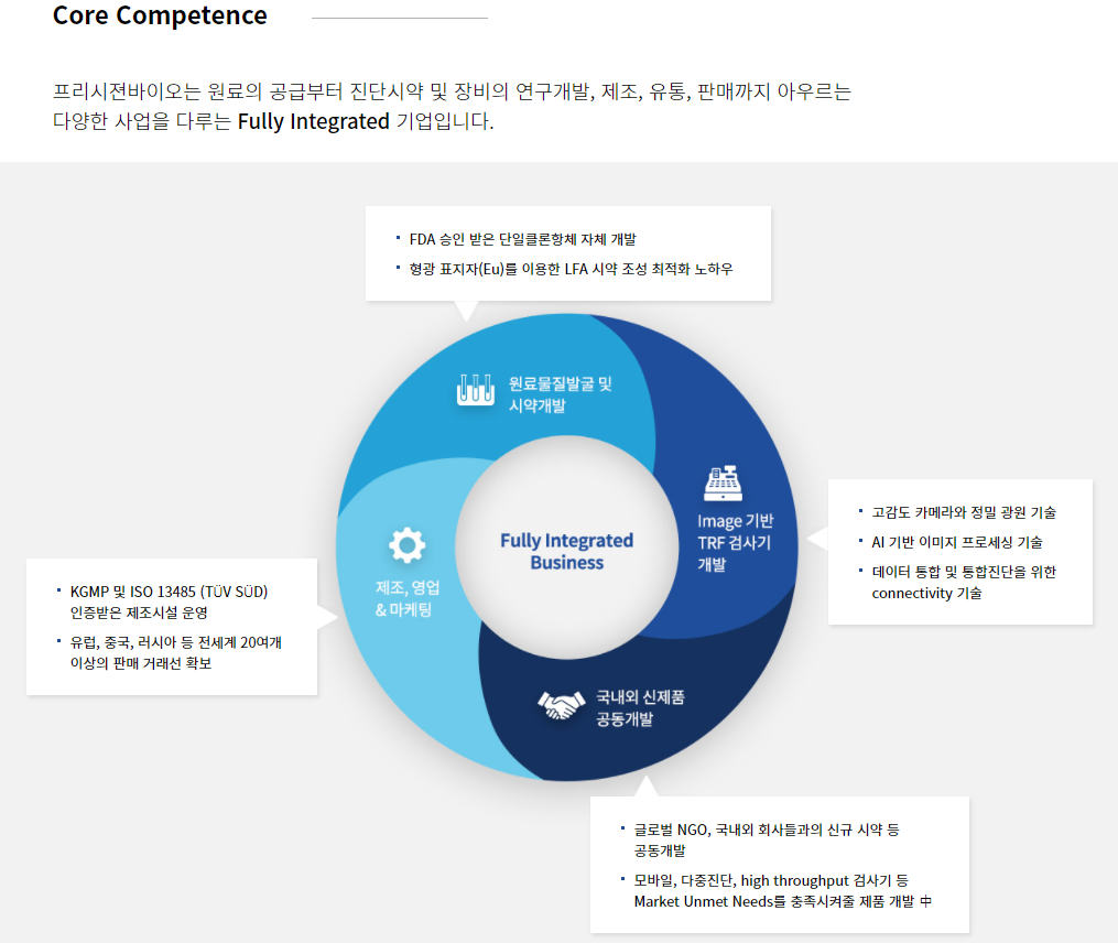 체외진단에 필요한 원료부터 진단시약, 장비, 제조, 유통, 판매 모두 아우르는 사업을 하고 있습니다.