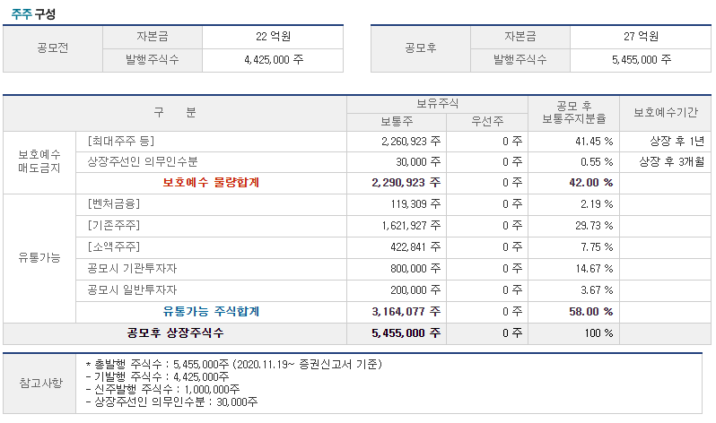 주주구성을 보시면 총 550만주에 유통가능 주식수는 316만주입니다.