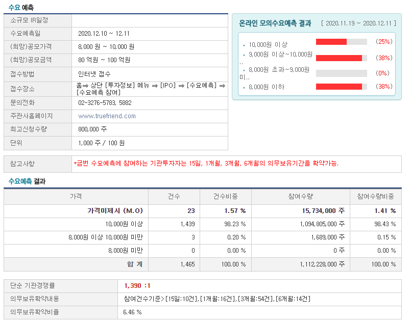 수요예측에서는 10,000원 이상이 98.23%를 받았고