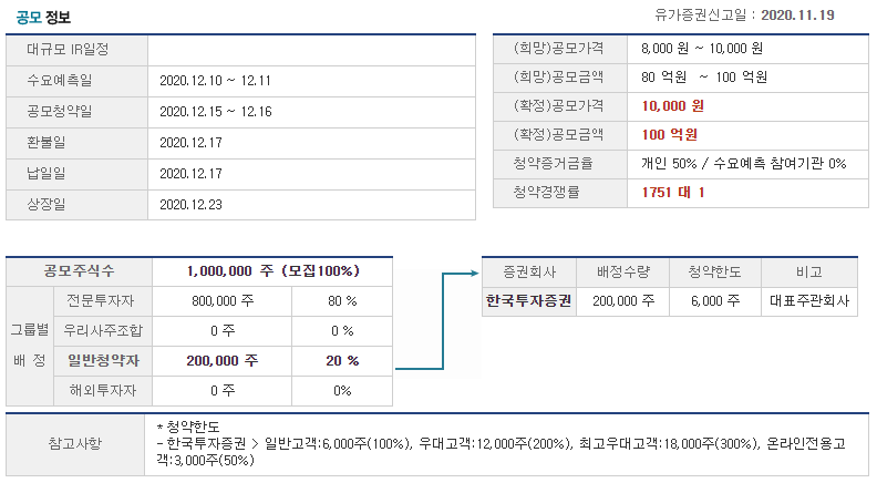 확정공모가격은 10,000원으로 되었고 개인들의 청약경쟁률은 1751:1로 엄청난 경쟁률입니다.